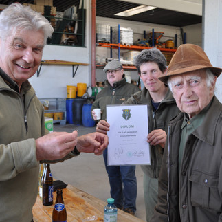 Im Rahmen der Flurreinigung bedankte sich die Jägerschaft bei Johann Kaufmann und überreichte ihm das Diplom für seinen 75jährigen Jagdkartenbesitz.